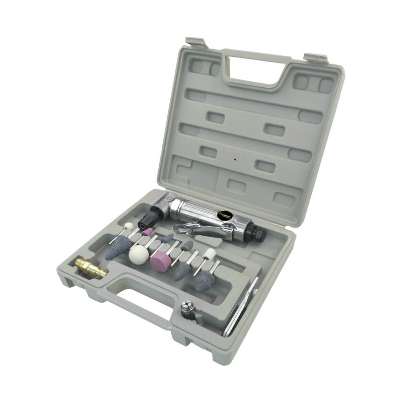 | Parâmetros de amostra | Conjunto de moinho de vento de ângulo reto de 16 peças Diâmetro do mandril: 6MM Velocidade sem carga: 20000r / mim Consumo de ar: 4CFM Pressão de trabalho: 90psi / 6.3bar Entrada de ar: 1/4 ' 1PC Moinho de vento de ângulo reto 2PC Wrench 1PC 3MM Chuck 1PC Orifício de conexão 5PC 6MM cabeça de moagem 5PC 3MM cabeça de moagem 1PC caixa de moldagem por sopro |